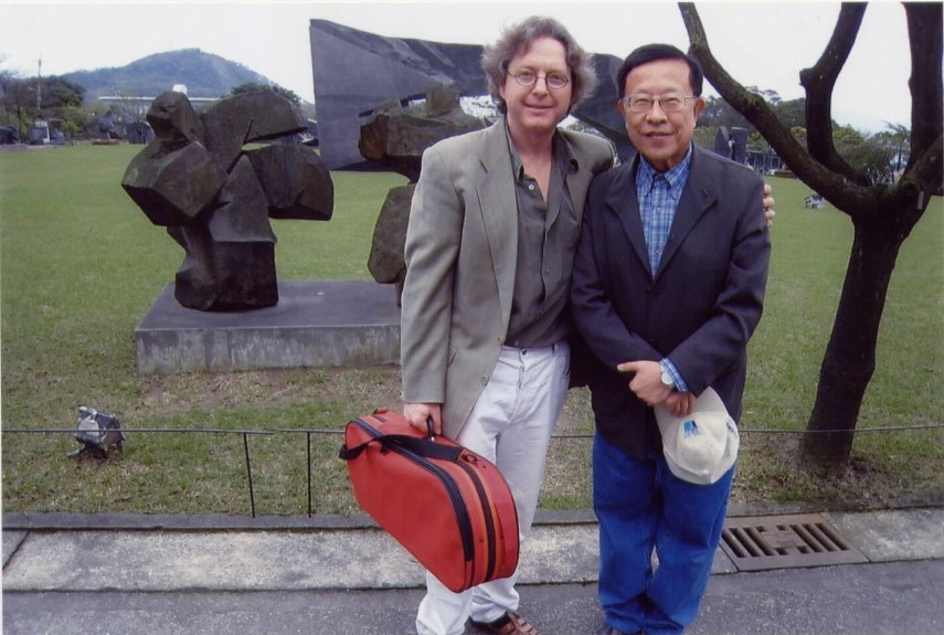 Here is a nice photo at the Ju Ming Museum in the sculpture garden. Behind Charles Kao and me there are several heroic bronzes. At first they appear totally abstract, but are inspired by tai chi poses. Of course, all movement originates in the heart: